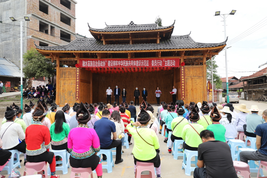 5月17日,融水苗族自治县政协、县委统战部、县妇联等单位到该县拱洞乡高武村开展“建设铸牢中华民族共同体意识示范区委员行动”主题活动。