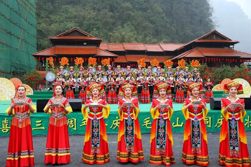 民族团结石榴籽紧抱,繁荣发展幸福花盛开。在广西推动建设铸牢中华民族共同体意识示范区和世界旅游目的地的背景下,2024年河池市第三届文化旅游发展大会提出,加快建设文化强市、旅游强市,把集山水诗意与千年文韵的河池,打造成八方游客心驰神往的“别样桂林”,为推进“六新河池”建设贡献力量。