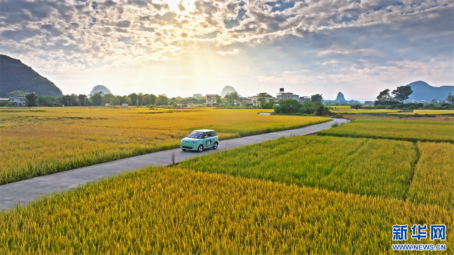 金秋时节,稻浪翻滚,广西桂林市临桂区迎来了又一年的秋粮丰收季。走进临桂区四塘、会仙、两江等秋粮产区,连片金黄的晚稻映入眼帘,风吹穗浪,稻谷飘香,与河流、山峦、村庄构成唯美的田园画卷。