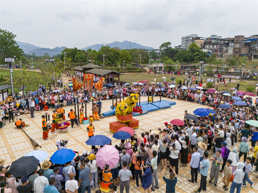 武鸣区马头镇历史悠久,留存着中府大王庙遗址、龙母传说源地、敢刀岩洞葬遗址等骆越文化遗迹。“四月四”祈丰节作为当地传统节日,蕴含着广大群众对风调雨顺、稻谷满仓的美好祈愿。2014年11月,壮族“四月四”被列入第五批自治区级非物质文化遗产代表性项目名录。(梁挺)