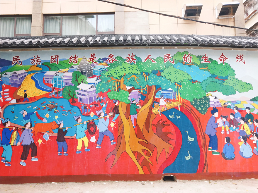 该“民族团结侗画宣传墙“也成为了三江侗乡目前最美的侗画宣传墙,充分体现了三江侗乡民族团结进步、社会和谐稳定、事业科学发展的新景象。(吴周宏)