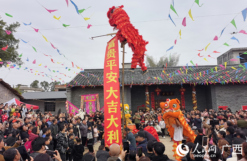 柳江区进德镇四连村土垢屯传统“上灯节”活动现场。人民网 付华周摄 人民网柳州2月10日电 (付华周)非遗贺新春,共赏客家韵。2月9日,正月十二,广西柳州市柳江区进德镇四连村土垢屯举行传统“上灯节”。这里的客家人鸣鼓舞狮将五彩缤纷的新花灯从村口迎入祠堂,现场年味浓浓,吸引了四面八方的...