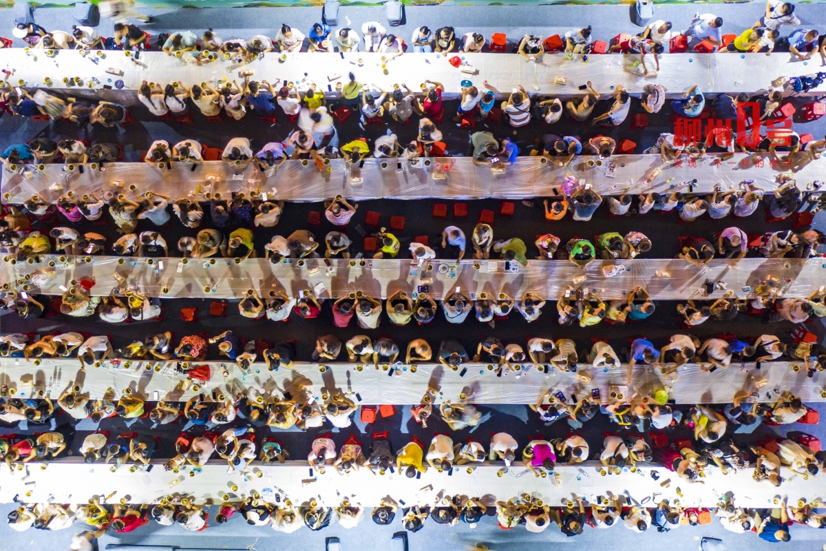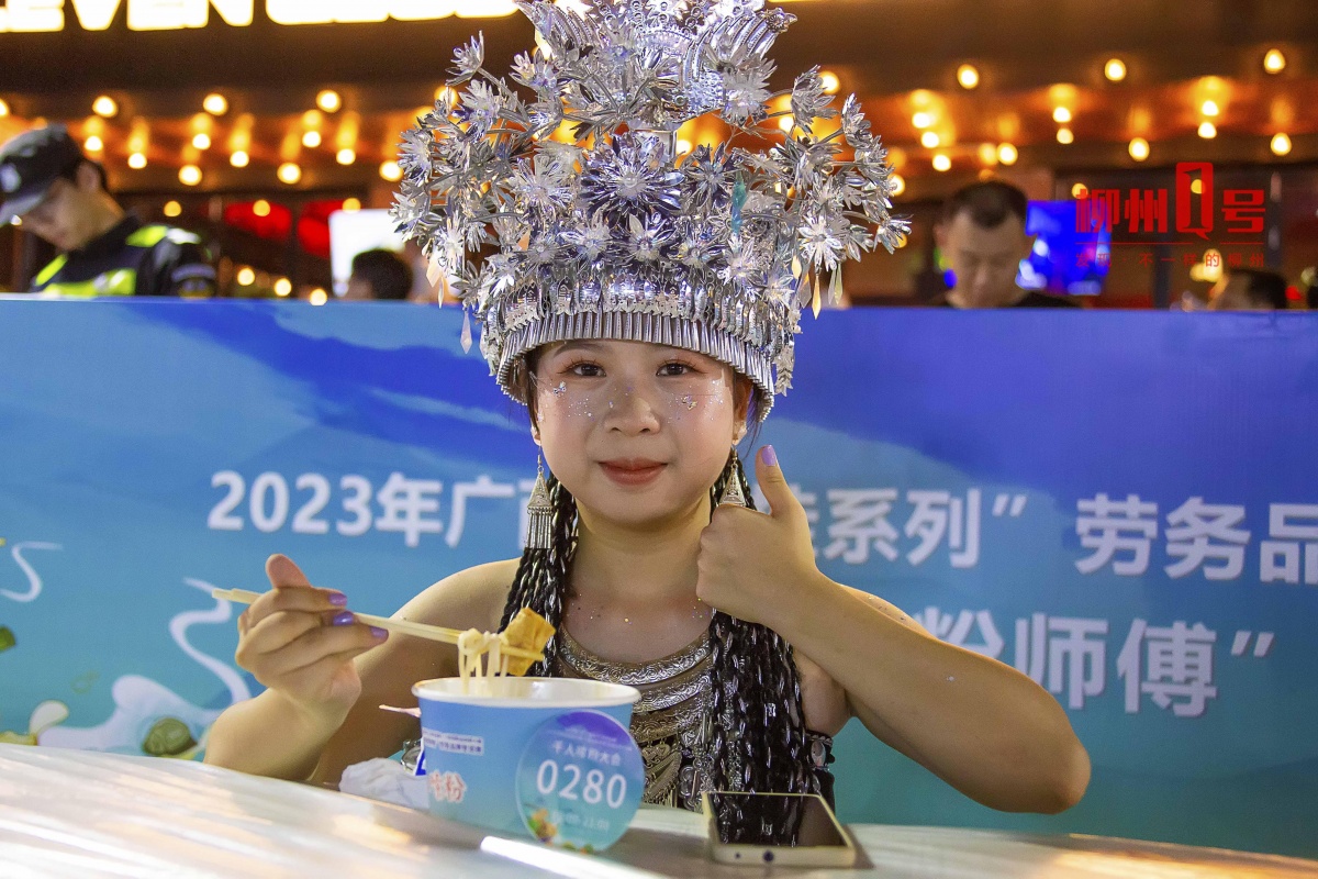 “味道真不错!”7月28日晚,柳州城市会客厅窑埠古镇热闹非凡。龙城阁前,5张长桌坐得满满当当,现场香气扑鼻,正在进行的是“千人嗍粉”活动。