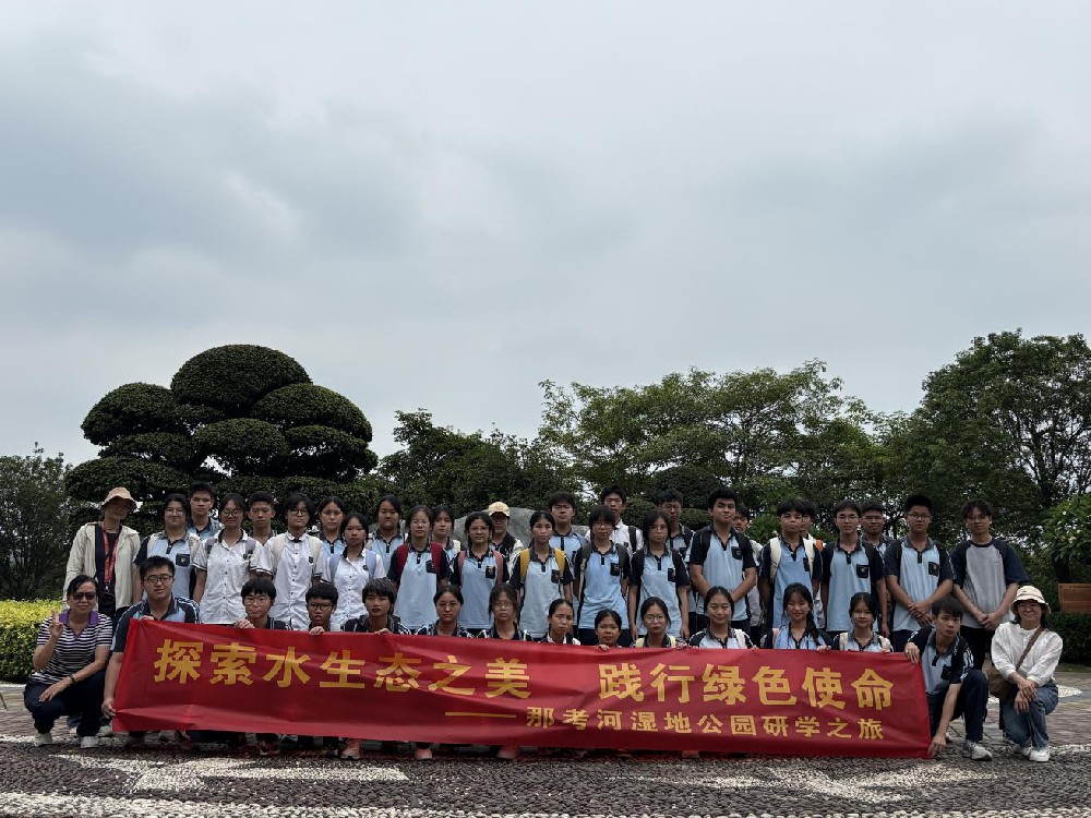 2025年5月27日下午,在劳梅娟年级组长、李俭(南宁市名师工作室主持人)、刘志红、梁浪、李香五位老师的带领下,南宁市第十三中学高二年级部分学生到那考河湿地公园开展以“探索水生态之美,践行绿色使命”为主题的研学活动。