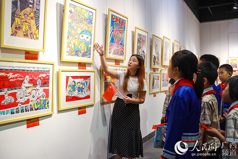 此次优秀作品展共展出获奖作品400余幅,分为“红色礼赞““多彩童年““翰墨生辉“三个板块,从不同侧面描绘中国共产党成立100年来取得的伟大成就,勾勒祖国的壮美山河,赞颂家乡的风土人情,展现全区广大儿童听党话、跟党走,为实现中华民族伟大复兴的中国梦发奋学习、努力拼搏的决心和情怀。作品展还举行优秀作品义卖活动,善款将全部捐赠给广西妇女儿童发展基金会用于扶助困境儿童。