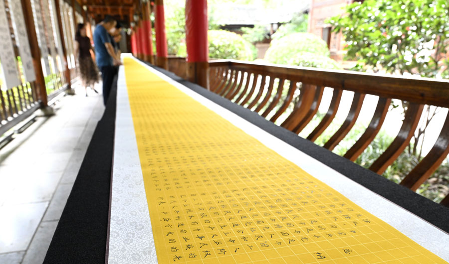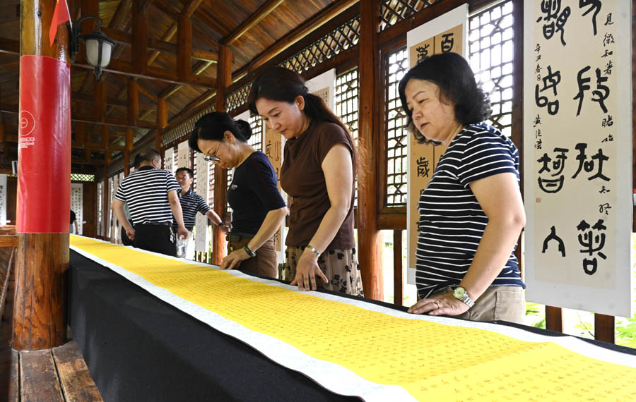 市民在欣赏草书长卷《祭湘江战役》。黎寒池 摄