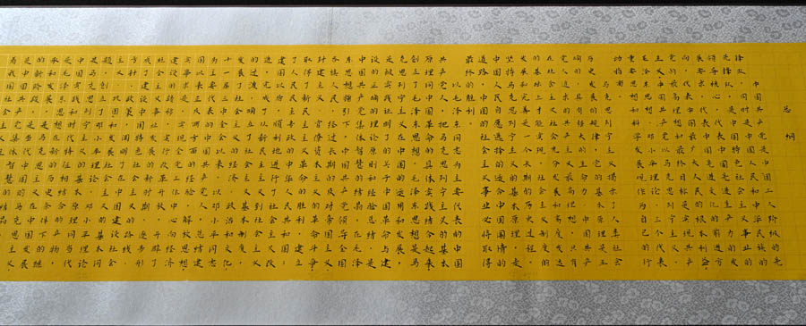 小楷长卷《中国共产党章程》(局部)。黎寒池 摄