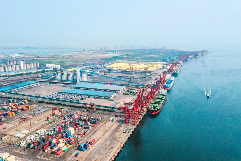这是广西北部湾港防城港区码头(2019年4月14日摄,无人机照片)。新华社记者 曹祎铭 摄