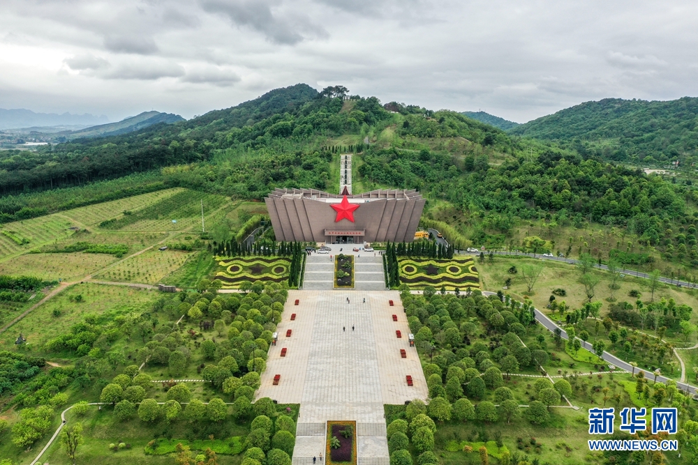 这是红军长征湘江战役纪念园(2021年4月25日摄,无人机照片)。新华社记者 曹祎铭 摄