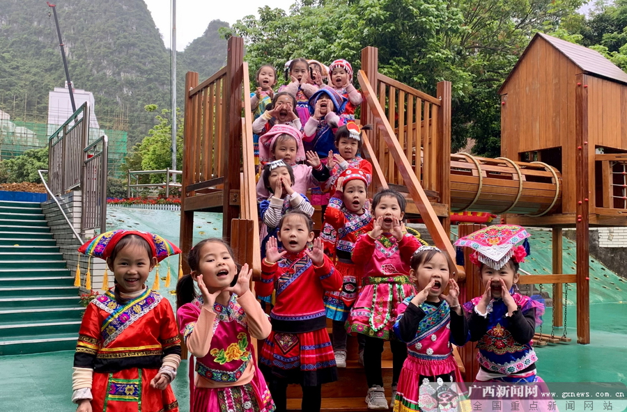 “壮族三月三“期间,河池市宜州区各幼儿园开展丰富多彩的民俗活动,引导孩子们了解壮族优秀传统民俗文化。图为宜州区第三幼儿园的孩子们在唱山歌。记者 廖庆凌 通讯员 蒙园春 摄