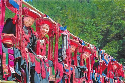 11月30日,盘王节当天,桂平市紫荆镇大瑶山的瑶族同胞穿上瑶族盛装,欢庆瑶族最隆重的节日。(张锦燕摄)