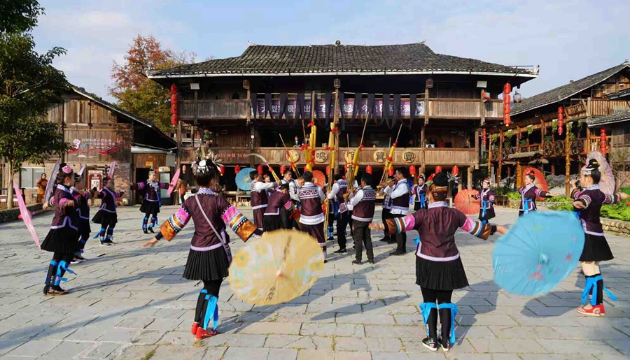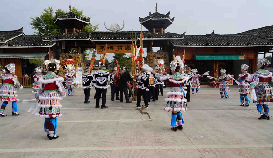 12月10日,融水杆洞驻融芦笙队来到融水梦呜苗寨开展“打同年“活动。“打同年“是融水苗族自治县一带苗族同胞的民族习俗。“打同年“是苗族村寨之间开展的联谊活动。