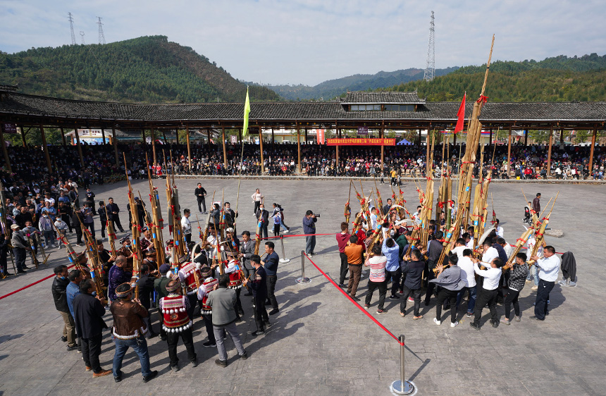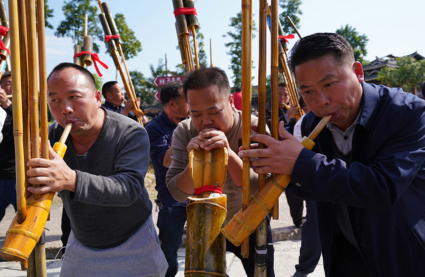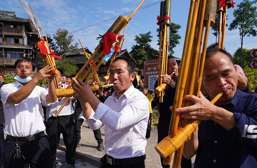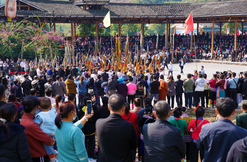 游客和村民在观游客和村民在观看吹芦笙比赛。