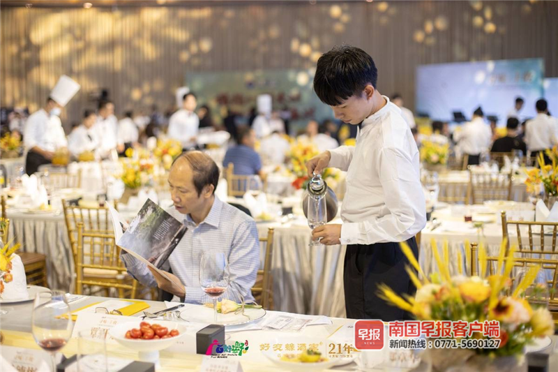 发布会上,来自马山、陆川、横县、环江、荔浦五县市的领导、农户代表来到活动现场,为家乡特产“代言“。以5款广西好食材制作的清汤马山黑山羊炖羊肚菌、堂涮陆川土猪雪花肉、横县脆皮茉莉鸡配广西酸野、荔枝木烤环江香牛配煲仔饭、荔浦芋蓉官燕配糖心荔浦芋等6款菜品依次呈现,在还原食材自然真味的同时,也向到场宾客展现出粤式餐饮的精湛技艺。