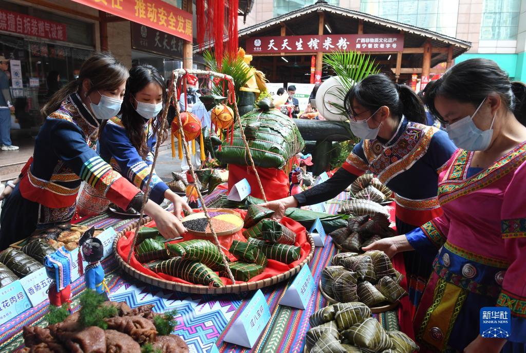当日,广西南宁市举办首届水街年粽民族小吃品鉴会,由社区居民亲手制作的各种小吃集中亮相。