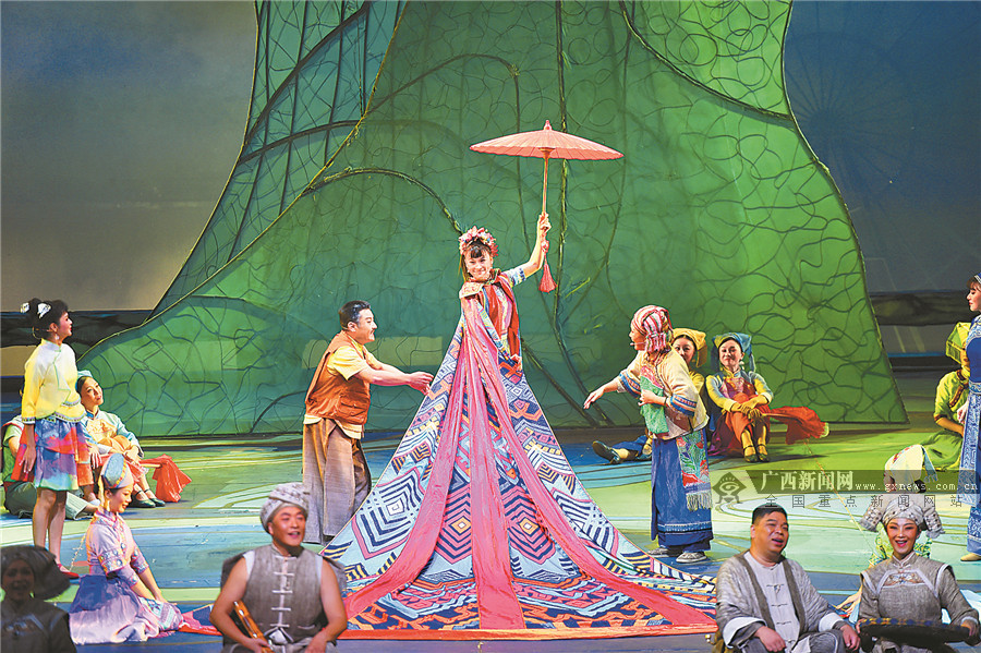 “全剧让人似曾相识又耳目一新。“北京观众李晴晴说,她被《新刘三姐》深深感染打动,“这既是彩调剧、山歌戏,又是一部精彩音乐剧,还融入摇滚、电商、平衡车等现代元素,这种多元化又和谐的美,也将吸引更多年轻观众走进剧场感受新时代的广西民族文化。“