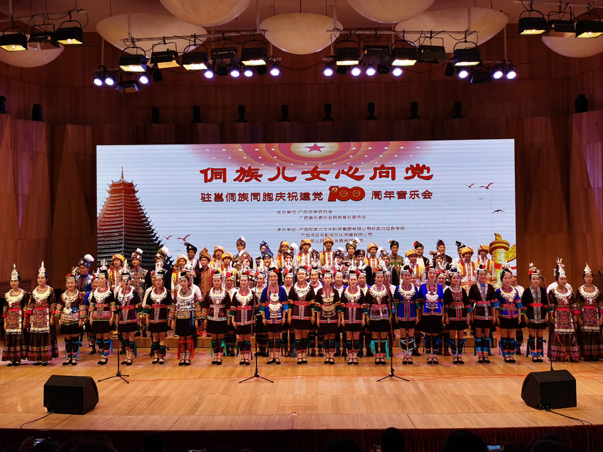 由广西音乐家协会民族委员会与广西侗学会联合举办的“侗家儿女心向党“—在邕侗族同胞庆祝建党100周年音乐会于24日晚上在广西音乐厅举行,全场座无虚席,近700名各界人士观看了当晚的演出。