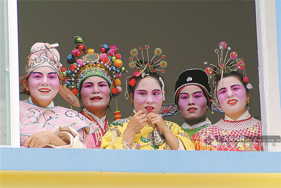 等待上场演出的浓妆花旦。