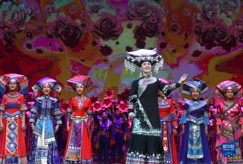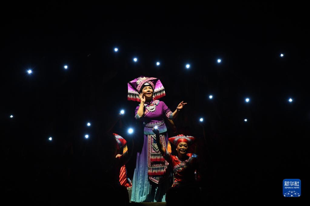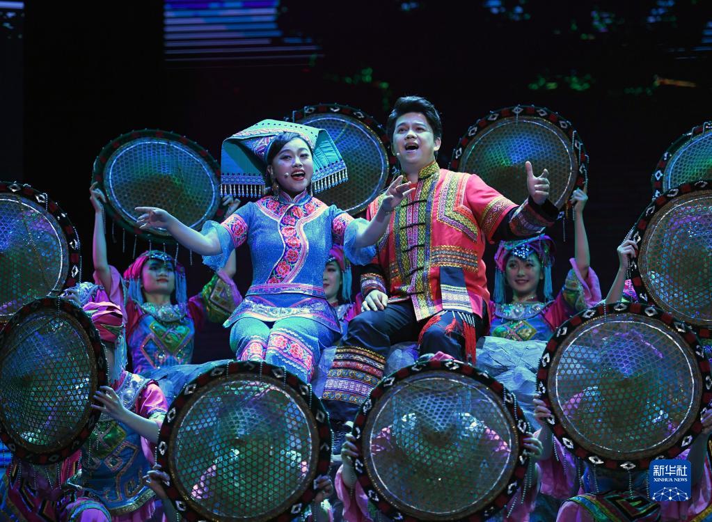 12月4日,演员在《十二天籁 壮族嘹歌》晚会上唱嘹歌。新华社记者 周华 摄