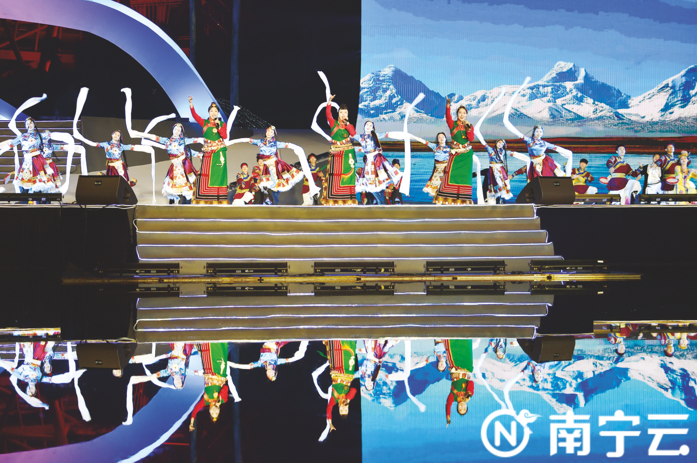 本届南宁国际民歌艺术节首次在南宁园博园录制,把舞台置入实景中进行精彩演绎。舞台设置与园博园内世界各国、中国各地园区的特色景观、生态风貌互相映衬,山水相映、波光水影、华彩四溢。节目还运用国际友城资源,通过“现场+云互动“的方式,在歌曲《赶圩归来啊哩哩》中,首府青年与四个国际友城的演员共同体验“云端赶歌圩“的美妙乐趣。民歌,架起了文化交流与合作的桥梁,本届南宁国际民歌艺术节不仅体现了民族团结的风采,而且通过民歌的交流和传播,推动中华优秀传统文化“走出去““走进去“,携手共绘“一带一路“崭新画卷。(记者 云亦云)