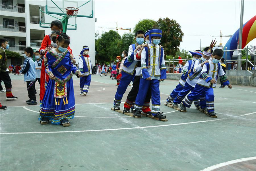 4月1日,致和路小学、直属幼儿园、第一幼儿园均开展了丰富多彩的“三月三“民俗文化活动。民族美术展、民族体育文艺展示、民族体育游园……在致和路小学,孩子们积极参与踩高跷、滚铁环、三人板鞋、抛绣球等民俗体育活动,在活动中体验和了解壮族的民俗特色,感受浓浓的壮乡风情,切身体会民族团结一家亲的含义; 跳花样竹竿舞、糯米饭拼盘……直属幼儿园的孩子们体验壮乡民族传统文化,深入了解“三月三“壮乡歌圩节习俗。而在第一幼儿园,师生们则通过举办民族体育游戏、区域活动以及户外圩日活动,让孩子们加深对壮民族文化的理解的同时,感受侨乡“三月三“独特的节日氛围。