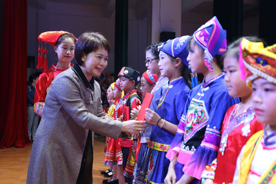 覃艳娟在开幕式讲话中说,广西是一个多元文化交融共生的地区,广西各民族文化缤纷多彩,共同构成了中华民族优秀文化的宝库。广西教育系统始终坚持从引导广大师生牢固树立“三个离不开““五个认同“着手,大力推广普及国家通用语言文字、科学保护少数民族语言文字,推进学校民族团结进步教育,铸牢各族师生中华民族共同体意识。壮汉双语教育是我区民族教育的重要组成部分,是党和国家民族政策在我区得到实施的一个具体体现,它对加强民族团结、传承和弘扬民族优秀传统文化、培养提高民族学生综合素质起到不可替代的作用。