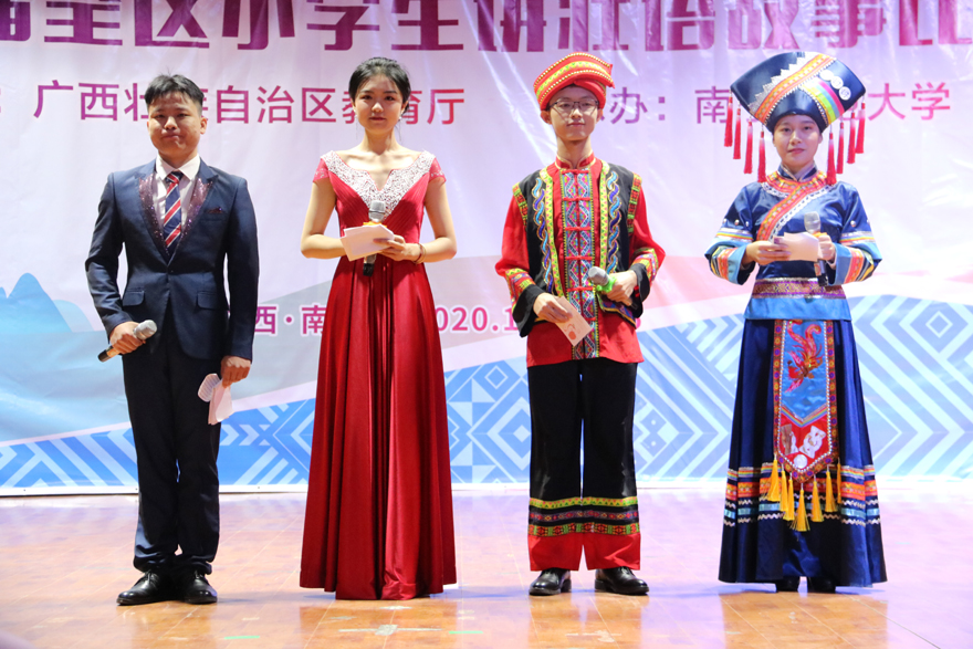 南宁师范大学初等教育学院壮汉双语班的学生用壮汉双语主持比赛
