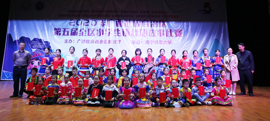 本报讯(记者 韦亦玮 实习记者 赵国锐 曾禹洲)11月14日至15日,由自治区教育厅主办、南宁师范大学承办的第五届全区小学生讲壮语故事比赛在南宁师范大学长堽校区举行。自治区教育厅民族教育处处长覃艳娟,广西民族教育发展中心副主任张海燕,南宁师范大学党委副书记伍先华,南宁师范大学初等教育学院党委书记彭英彪、院长梁宇出席开幕式。