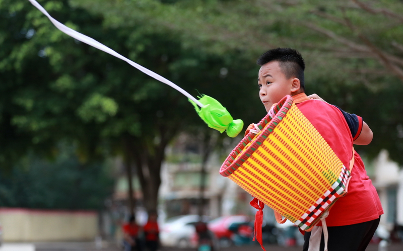 11月19日,扶绥县新宁镇吉阳小学的学生们正在开展民族传统体育“背篓绣球“运动。