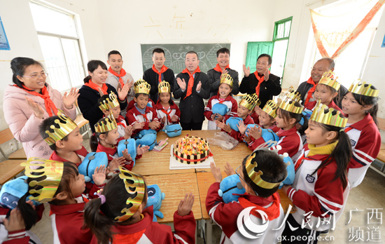 活动中还为出生在12月份的留守儿童过集体生日,爱心人士还为学生们送上玩偶做为生日礼物,给予他们更多的关爱,孩子们兴奋地手舞足蹈。其中,受助学生黄雅婷是华敏希望小学三年级的学生,她代表同学们说:“你们的爱滋润了我们的心田,我们会用心去阅读书本,用心学习知识,发奋学习,以优异的成绩报答大家对我们的关爱。“