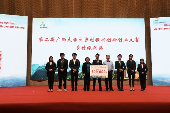 据了解,大赛于今年7月启动,历时5个月,吸引了区内外近60所高校的650支队伍报名,参赛大学生达到3200余人。最终,经过总决赛激烈比拼以及专家评委的投票,由广西职业技术学院参赛学生组成的“瑶韵苗寨队“斩获本届大赛“乡村振兴奖“,并赢取10万元奖金。