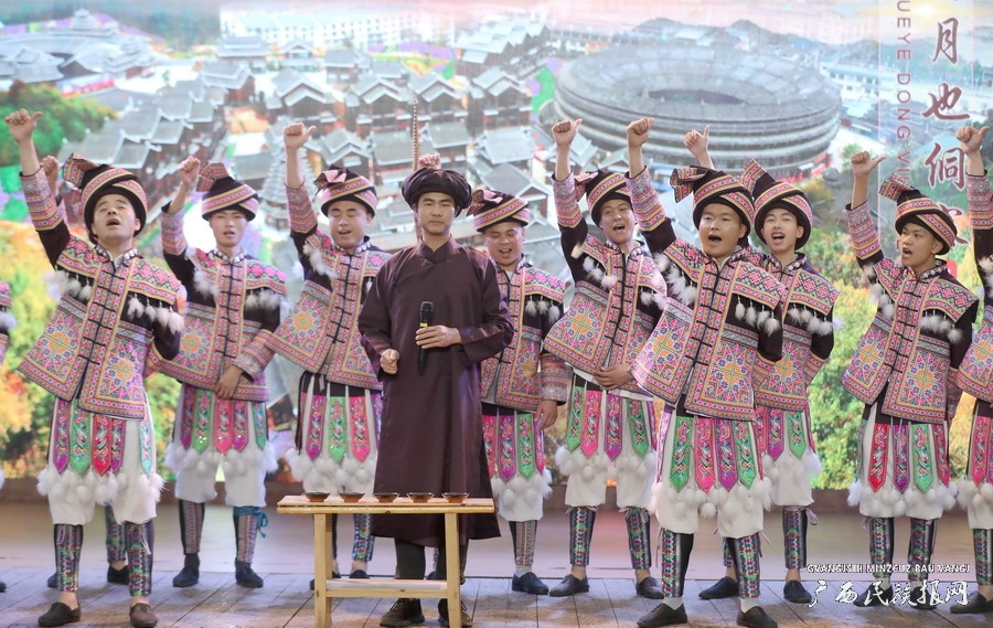 3月26日,演员们在三江侗族自治县月也侗寨景区表演侗族讲款。