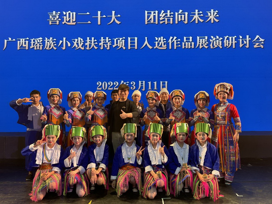 3月11日上午,“喜迎二十大 团结向未来“广西瑶族小戏扶持项目入选作品展演活动在广西儿童剧团隆重上演,平桂区文旅局创作的瑶族小戏扶持项目作品是《“土瑶“山里的百灵鸟》,平桂区民族学校12名“土瑶“学生同台参加了该节目的演出。