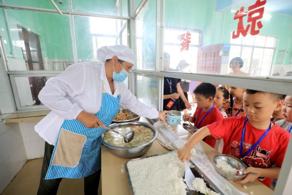 ?8月30日,在柳州市融安县大坡乡岗伟村小学,学生们在吃营养午餐。当日是2021年秋季开学的第一天,柳州市融安县根据当地饮食习惯和学生营养需要,科学制定多套食谱,让开展营养午餐的学校自行选择,确保学生们吃饱吃好。...
