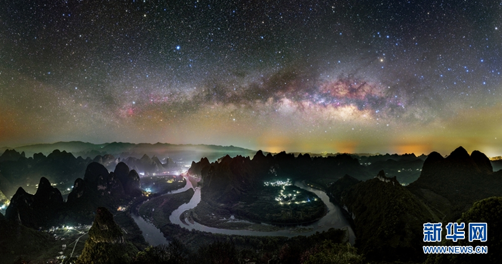 夜空下群峰逶迤,漓江穿行其中,如梦如幻。王晋 摄