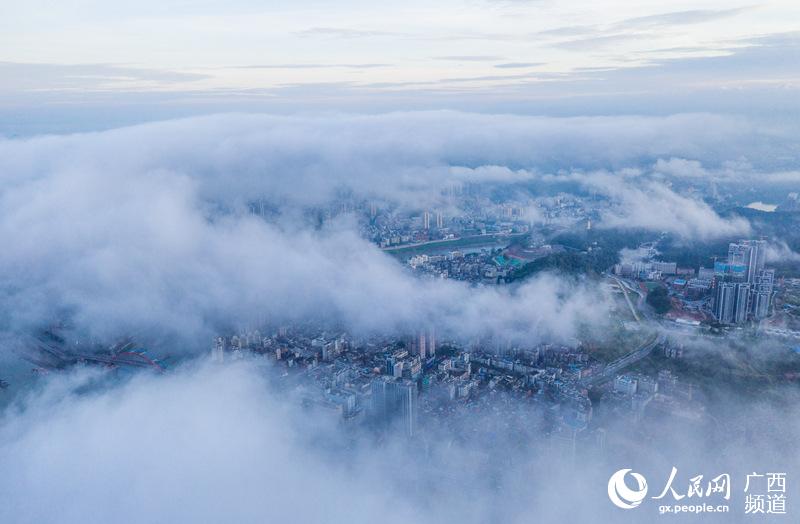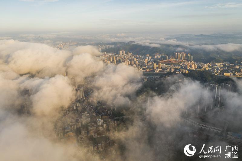 人民网梧州8月7日电 8月7日是农历立秋节气,早晨的广西梧州市云雾缭绕,若隐若现,美不胜收。(何华文)