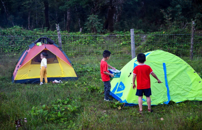 8月22日,游客在龙胜各族自治县南山草场露营游玩。