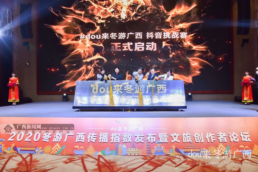 “#dou来冬游广西“抖音挑战赛正式启动现场。自治区文化和旅游厅供图
