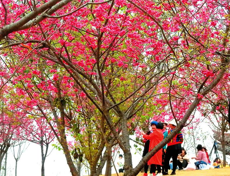 每到二三月春暖花开时,青秀山桃花岛上毛桃、碧桃、红叶桃等10多个品种12万株桃花争相怒放。游客置身花海中赏花拍照,感受春风惬意,祈求幸福好运。