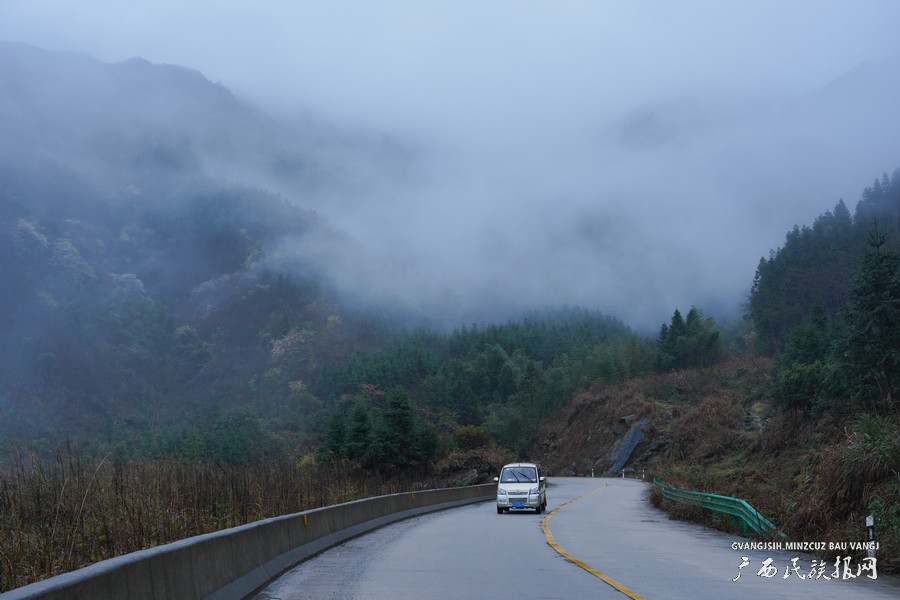 广西兴业:晨雾缭绕 群山宛如水墨画