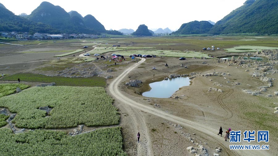 游客在柳州市柳城县古砦仫佬族乡独山水库库区游玩。