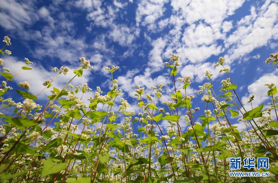在柳州市柳城县古砦仫佬族乡独山水库库区,荞麦花迎风绽放;