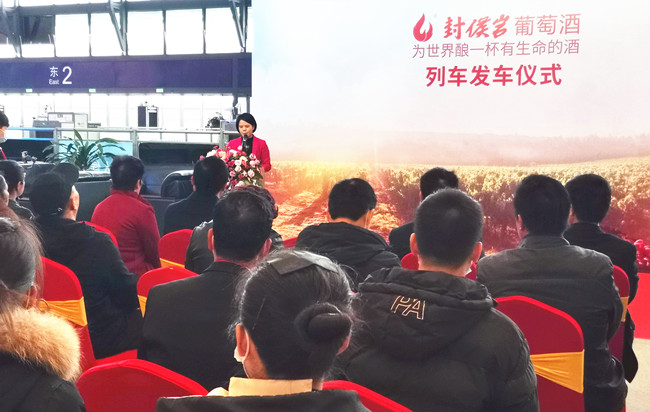 农卓松在致辞中表示,“封侯岩·为世界酿一杯有生命的酒“冠名列车启程首发,这标志着贵港市营商工作再创佳绩,又一“贵港造“品牌走向全国。她说,2017年贵港自然活酒科技有限公司选择到贵港投资兴业,通过政府的大力扶持,积极推动技术创新,实现了“封侯岩“葡萄酒品牌由小到大、由弱到强、由地方性品牌到区域性品牌的迅速成长,成为了政企合作、实现双赢的典范,是贵港大力优化营商环境的最佳印证之一。衷心期望贵港自然活酒科技有限公司在与广西高铁商旅服务有限公司精诚合作的过程中,把冠名列车打造成流动的城市名片,进一步将贵港的蓬勃发展和营商故事传颂出去,使更多的游客和投资商源源不断“车“进贵港,把“贵港造“品牌以及“荷城“的独特魅力“推“向全国。贵港市人民政府也将继续以“贵港速度“推动贵港经济更高质量发展,为企业提供一流的服务,营造一流的营商环境,我们与560万淳朴好客的贵港人民一道,敞开怀抱恭迎大家来到贵港观光旅游、投资兴业。