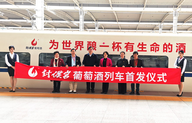 “封侯岩·为世界酿一杯有生命的酒“冠名列车首发仪式场景
