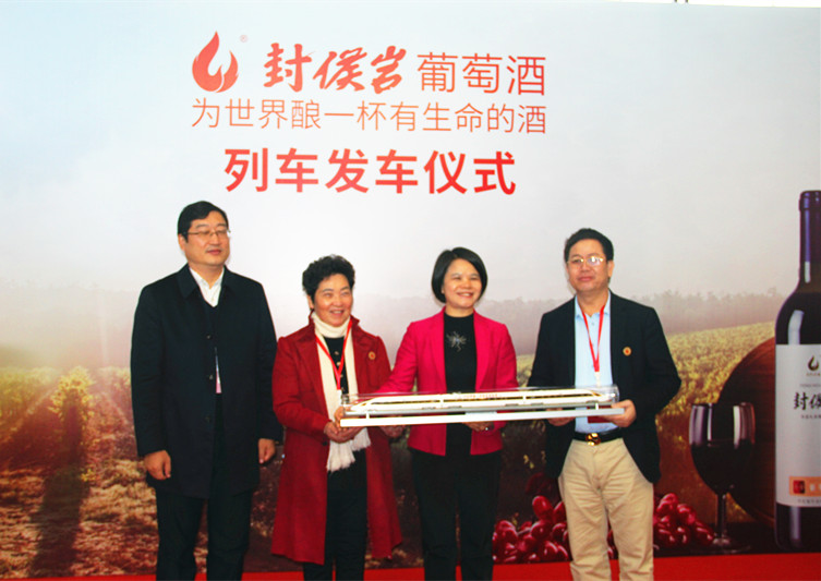 领导一起为“封侯岩·为世界酿一杯有生命的酒“列车揭幕