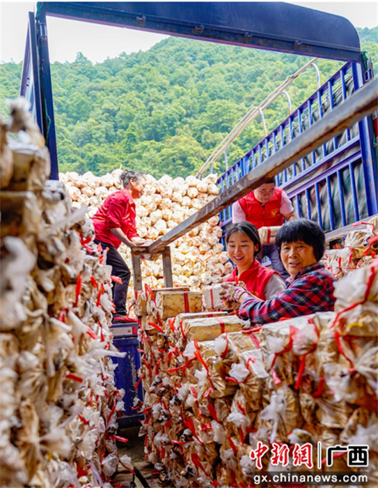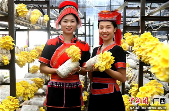 长垌村金秀圣堂•村集体经济产业园榆黄菇喜获丰收。长垌村供图