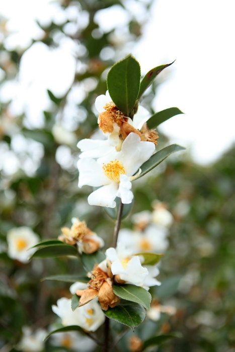 12月3日,在柳州市融水苗族自治县融水镇东良村陆村屯,拍摄到的盛开茶花。