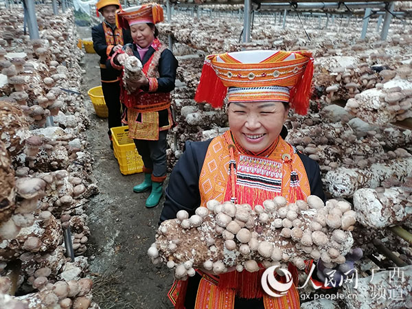12月20日,捧着收获的鲜菇,瑶乡人民心里乐开了花。蒙海摄