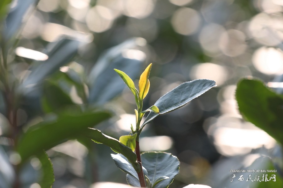 1月19日,在三江侗族自治县梅林乡车寨村平寨屯茶园基地拍摄的新茶芽。
