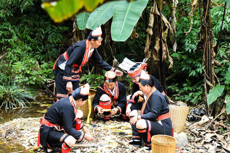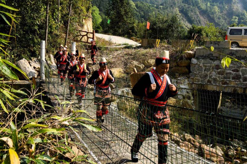瑶乡村民们背着竹筐上山找笋。金秀瑶族自治县融媒体中心供图